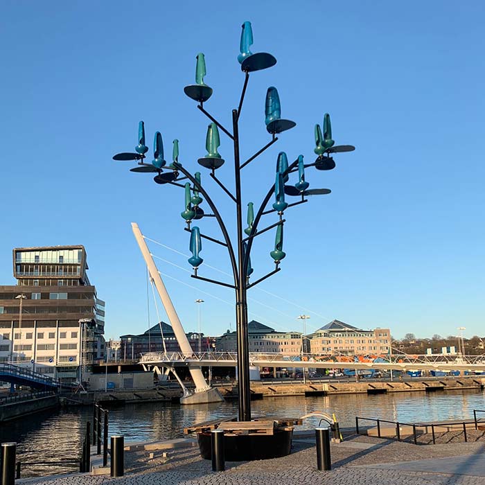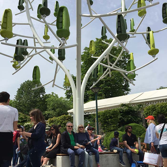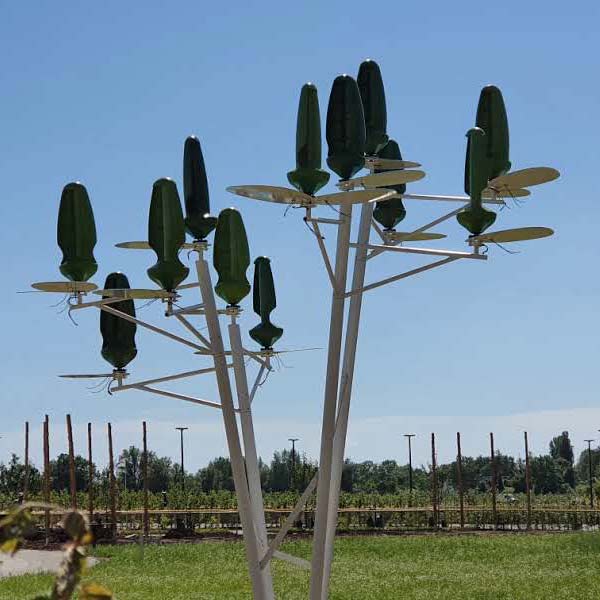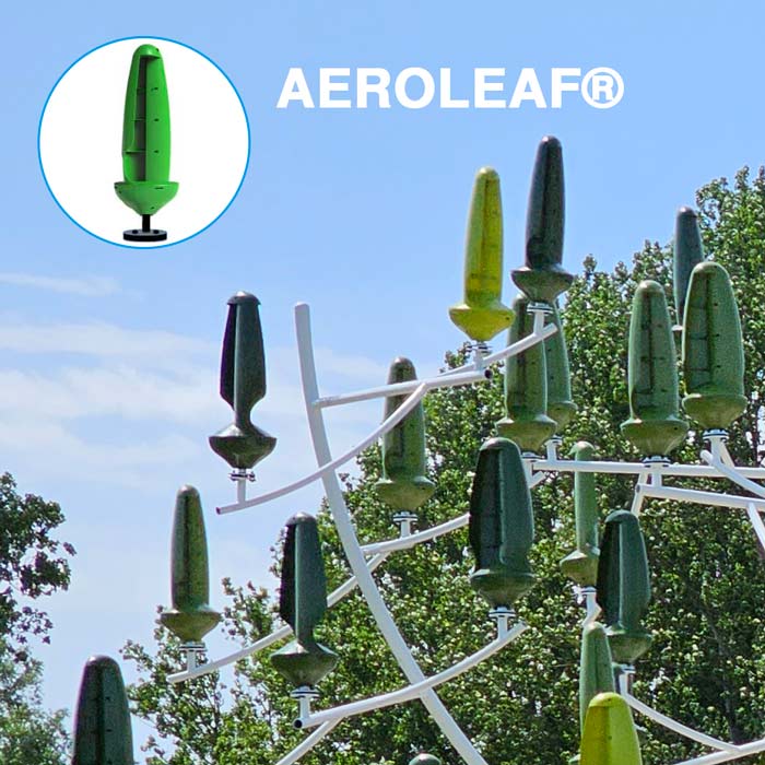 L’Aeroleaf® est une micro-éolienne brevetée dotée d’une double pale à axe vertical en forme de feuille et d’un micro-générateur synchrone. Selon le besoin, elle peut être couplée à un pétale photovoltaïque.